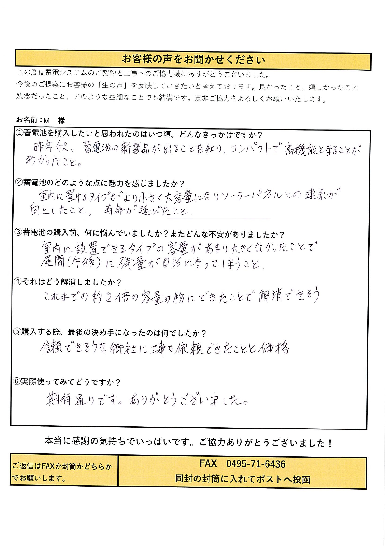M様邸 蓄電池設置工事