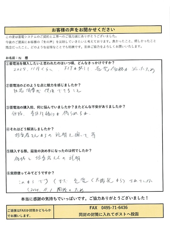 N様邸 蓄電池設置工事